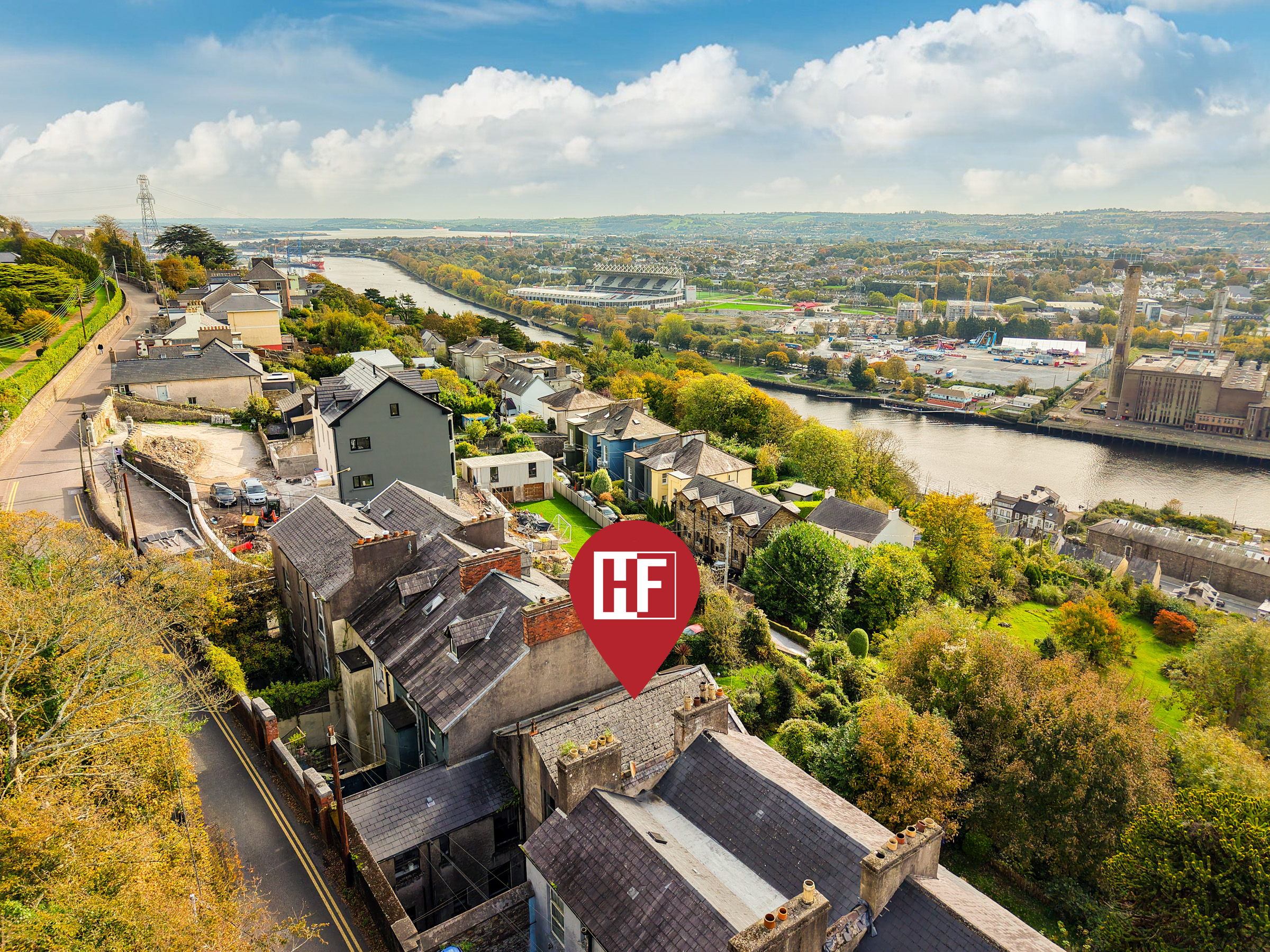 Currently configured as three individual flats, each with gas-fired heating, the property briefly comprises three living rooms, three bedrooms, three kitchens, and three bathrooms. High ceilings and generous window openings provide abundant natural light throughout and allow for excellent views over the River Lee.