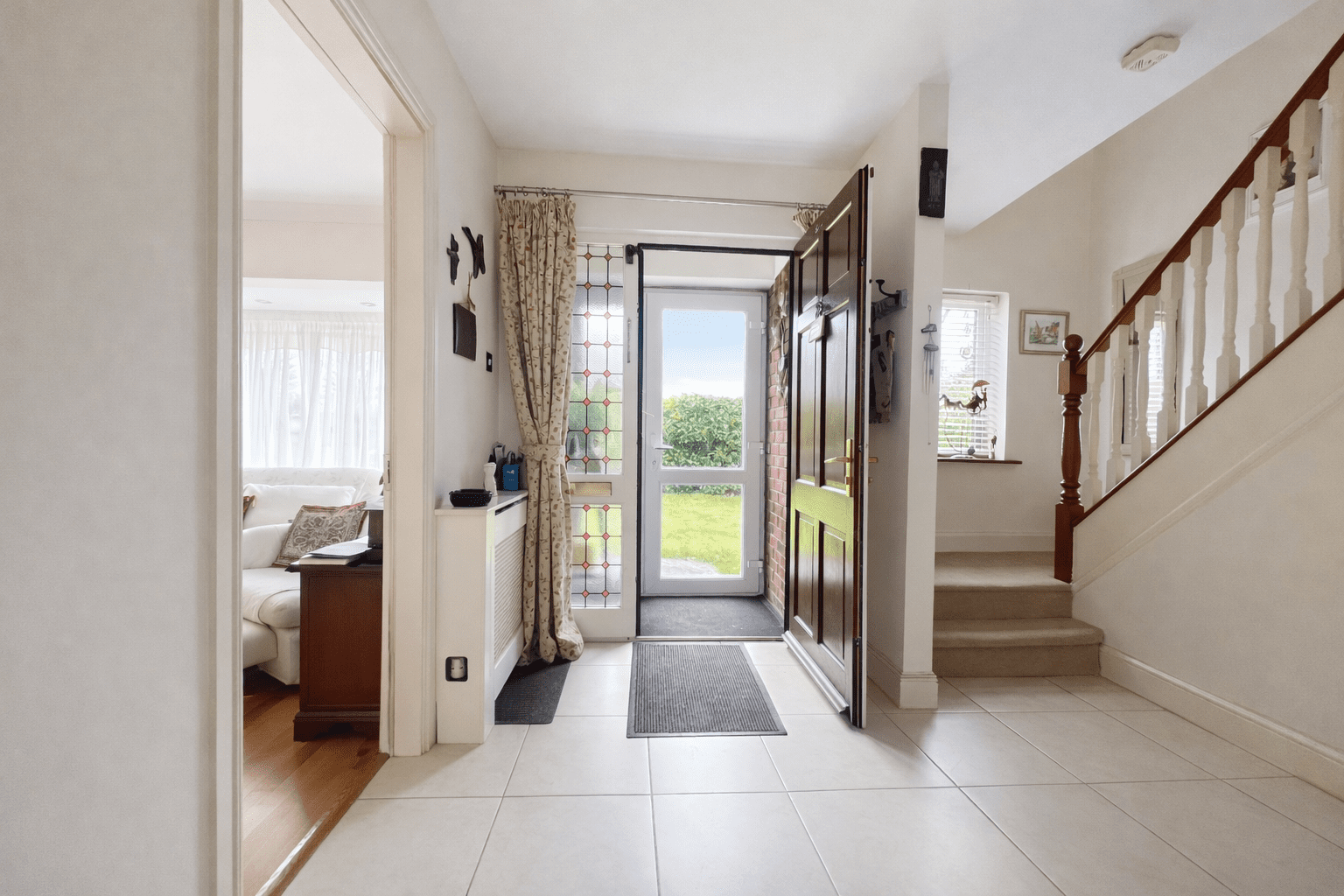 The ground floor layout is ideal for modern living. A bright and welcoming reception hall leads to a spacious living room featuring a bay window and a multi-fuel stove. To the rear, a recently extended dual-aspect open-plan kitchen, dining, and living area provides direct access to the garden. This level also includes a separate utility room and a guest WC.