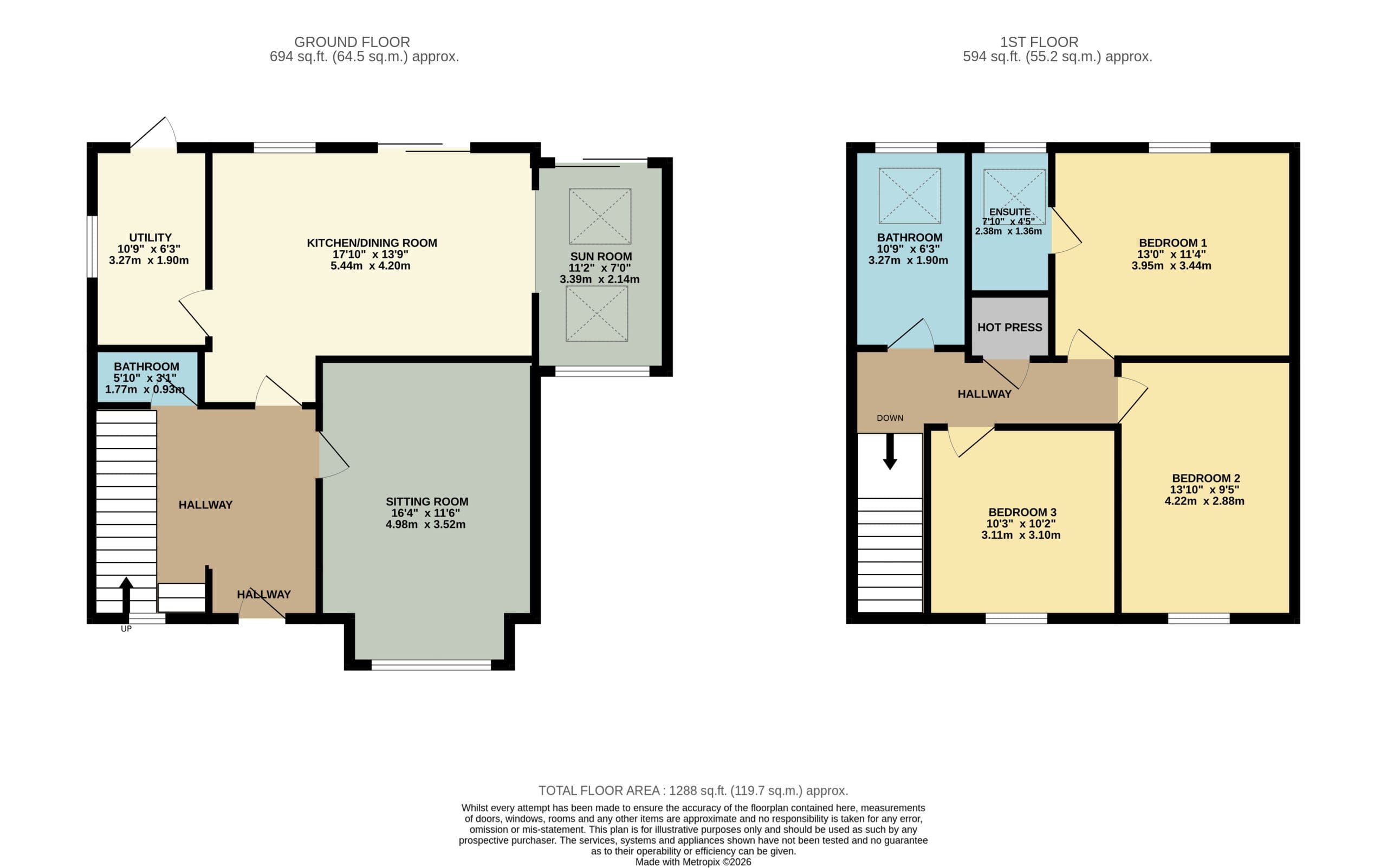 Upstairs there are 3 generous sized double bedrooms (one of which is Master bedroom with ensuite), a family bathroom and a large hot press with storage.