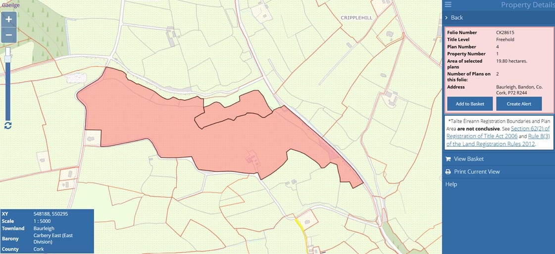 This is an attractive holding extending to c.48.93 acres, contained in Folio no. CK28615. The lands, which are laid out in one division, and are subdivided into a number of paddocks, are currently all in pasture.