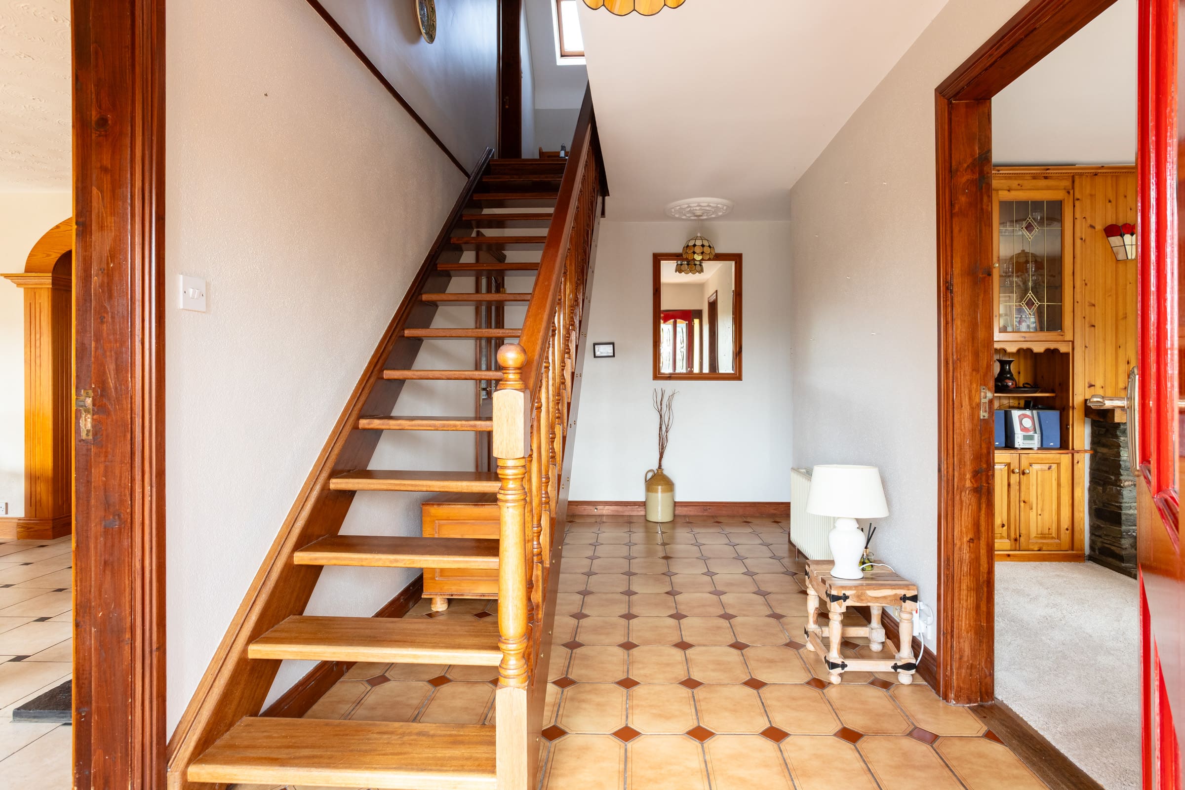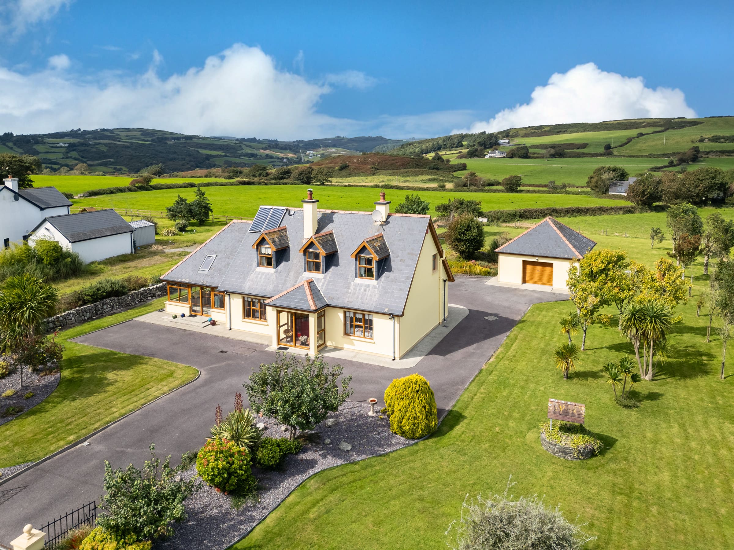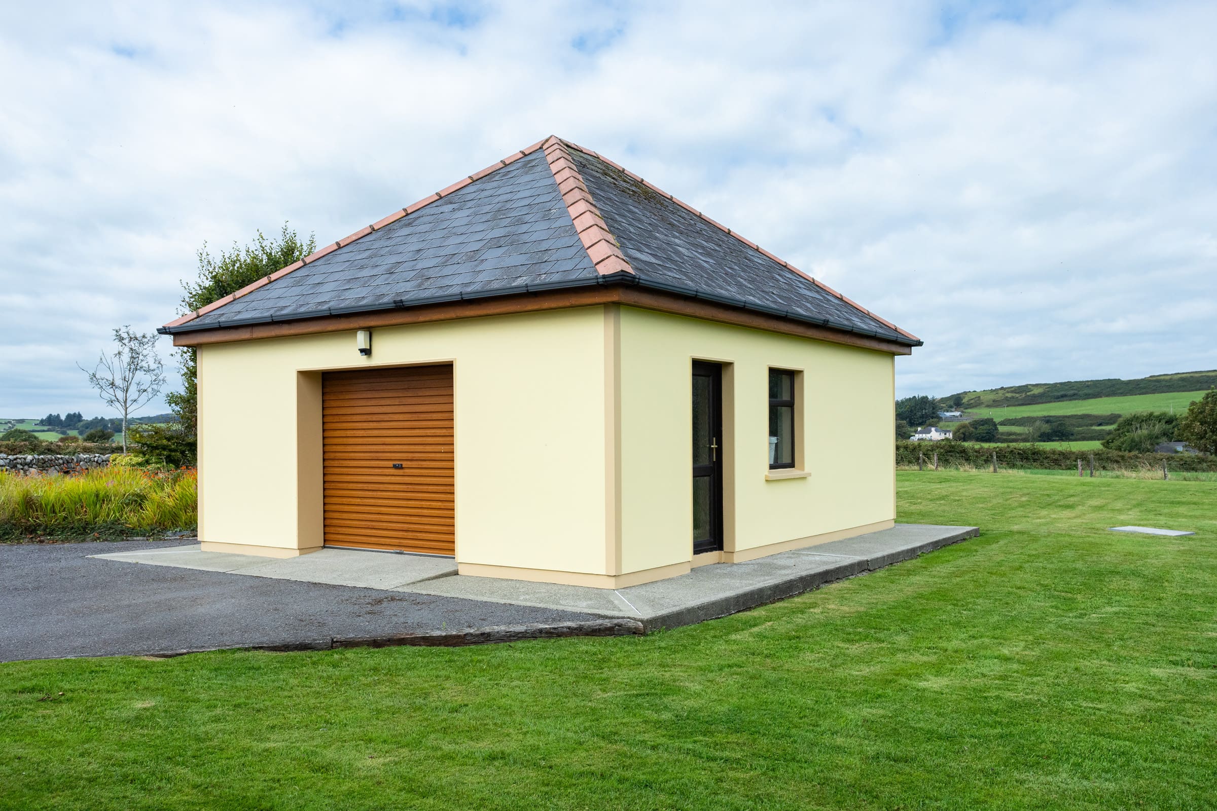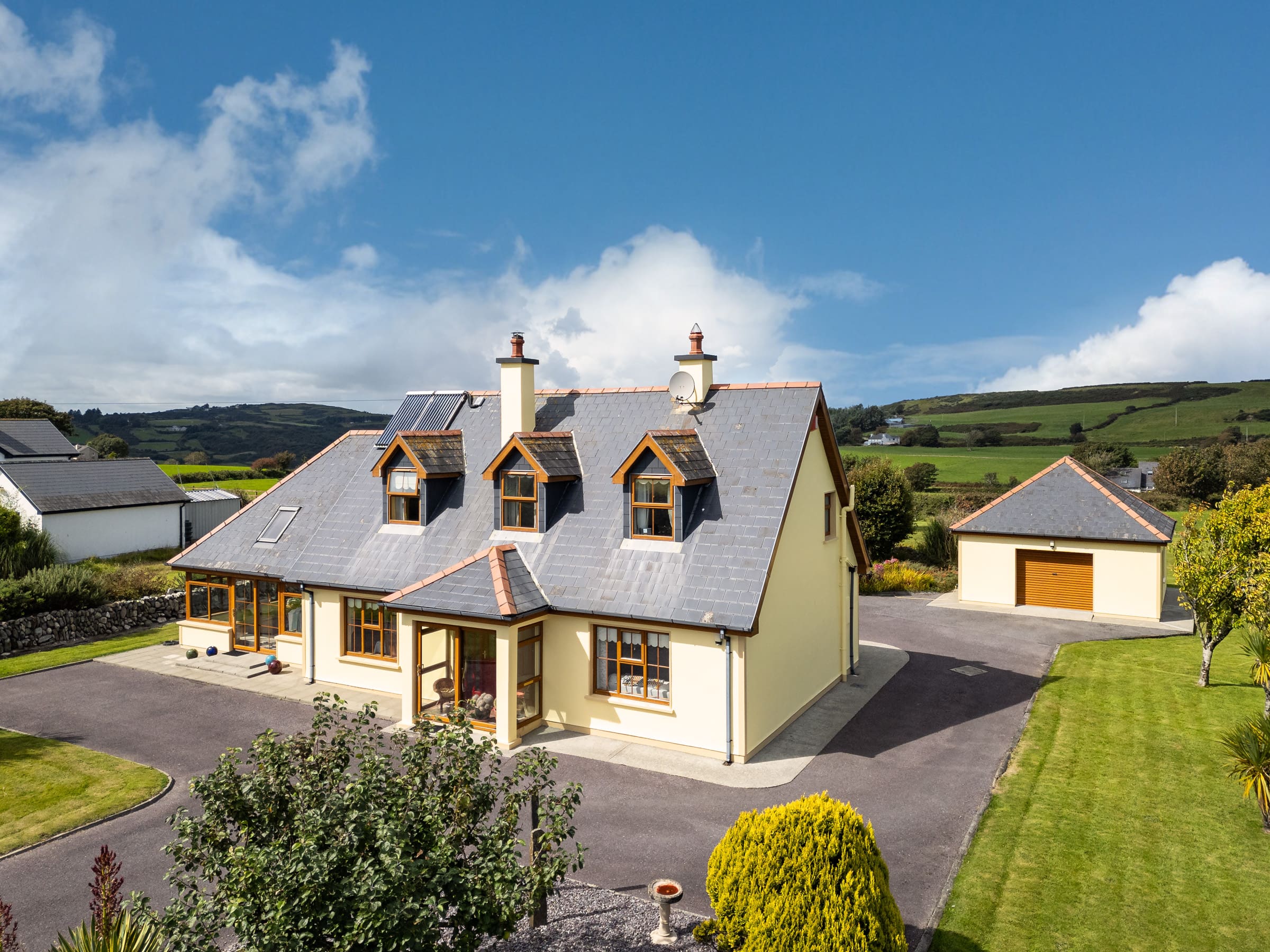 Externally the house is approached by a wraparound tarmacadam driveway which flows around to the rear of the house and provides direct access to the detached garage. The garage is a fine modern and block built structure with 2 large storage areas and lofted attic space. It is wired and plumbed.
