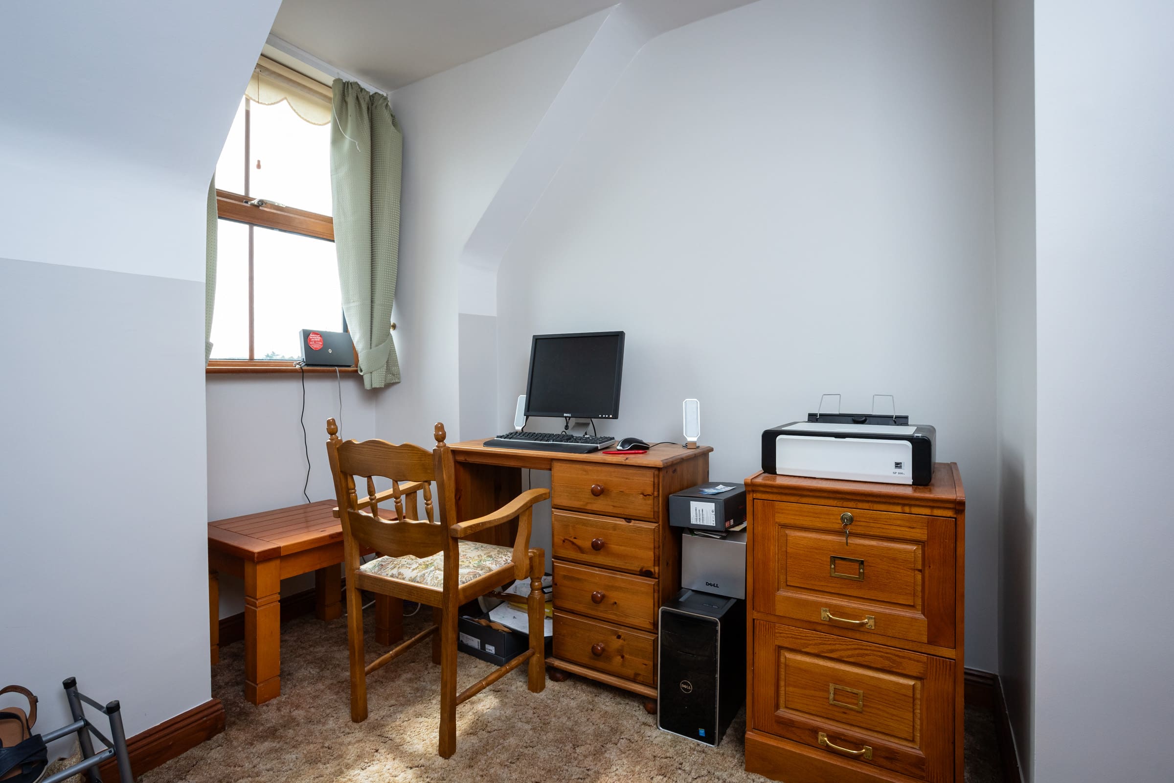 On the first floor are 3 bedrooms with the master bedroom being ensuite and featuring an abundance of built in storage. A second double room, a single bedroom/ office, bathroom and hot press complete the accommodation on the first floor.