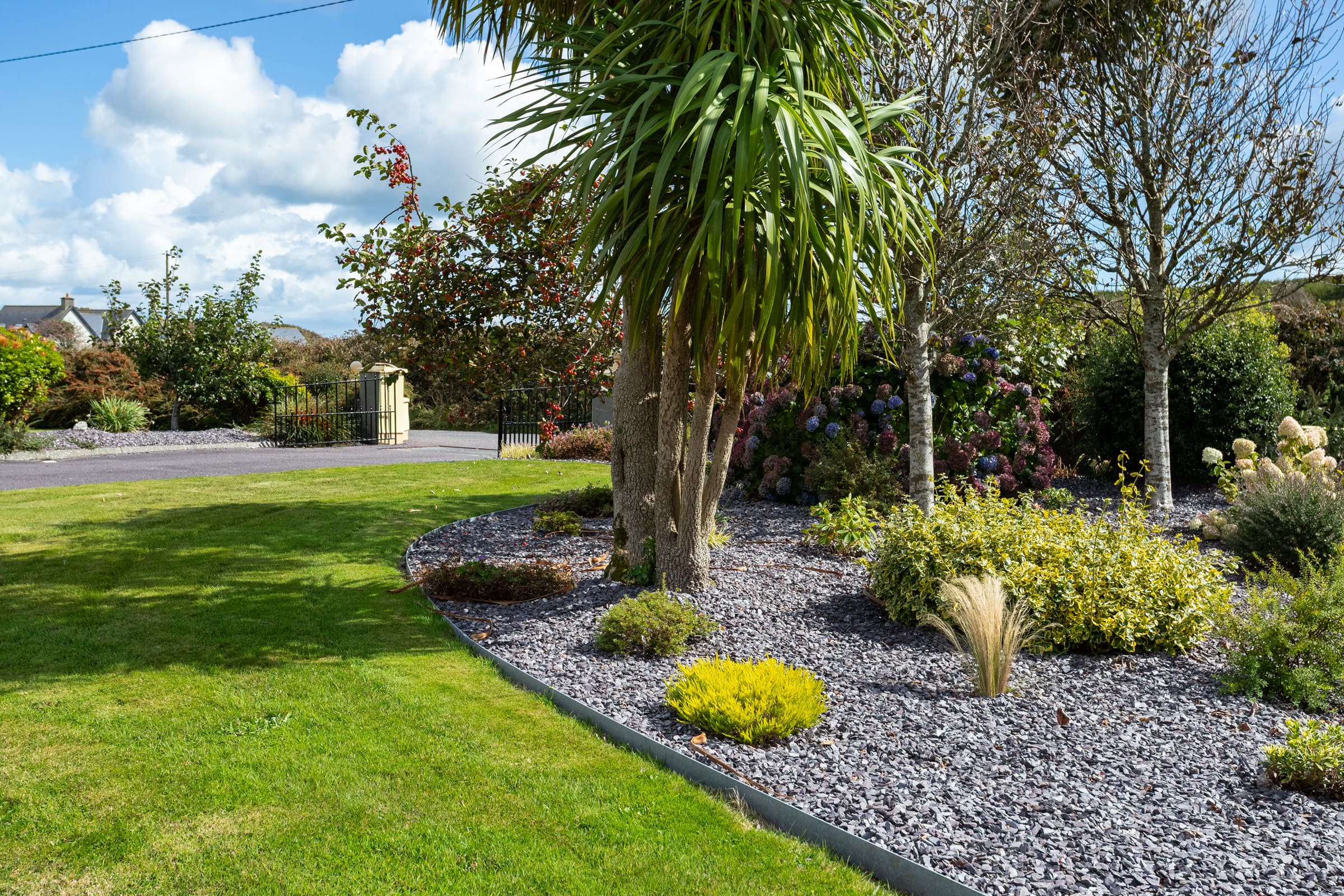 The c.0.7 Acre plot has matured into a wonderful array of landscaped lawn gardens with manicured displays of ornate shrubberies, hard and softwood trees and floral arrangements.