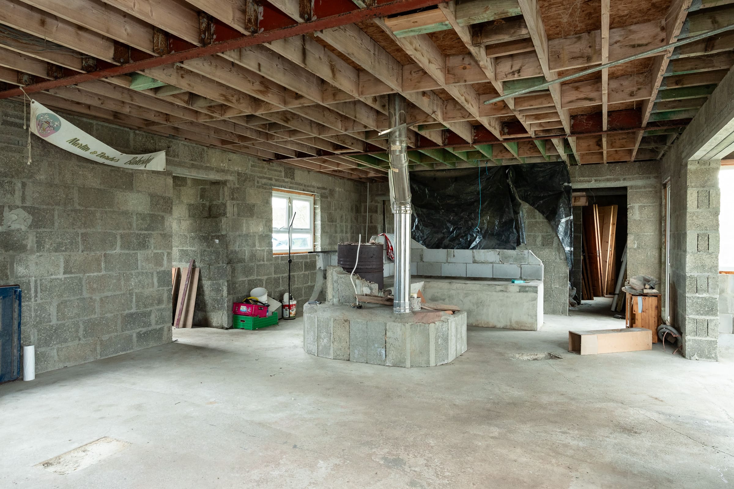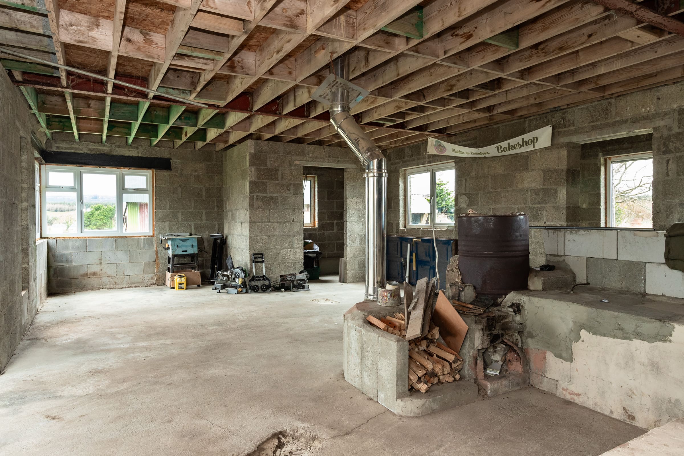 While working on finishing the main build, you can live in the 1 Bed Converted Garage, Living Room, Storage/Workshop, no rental necessary.