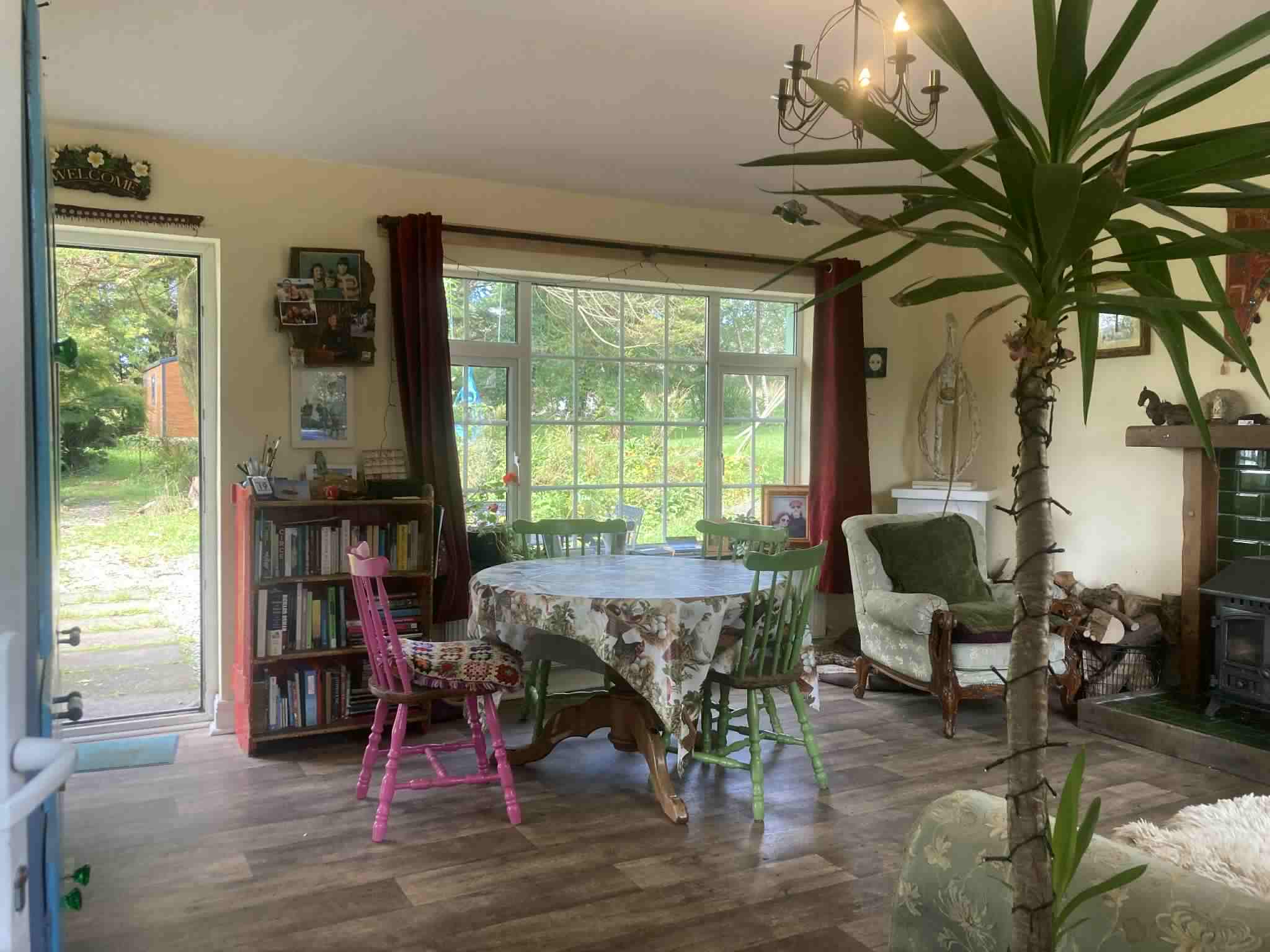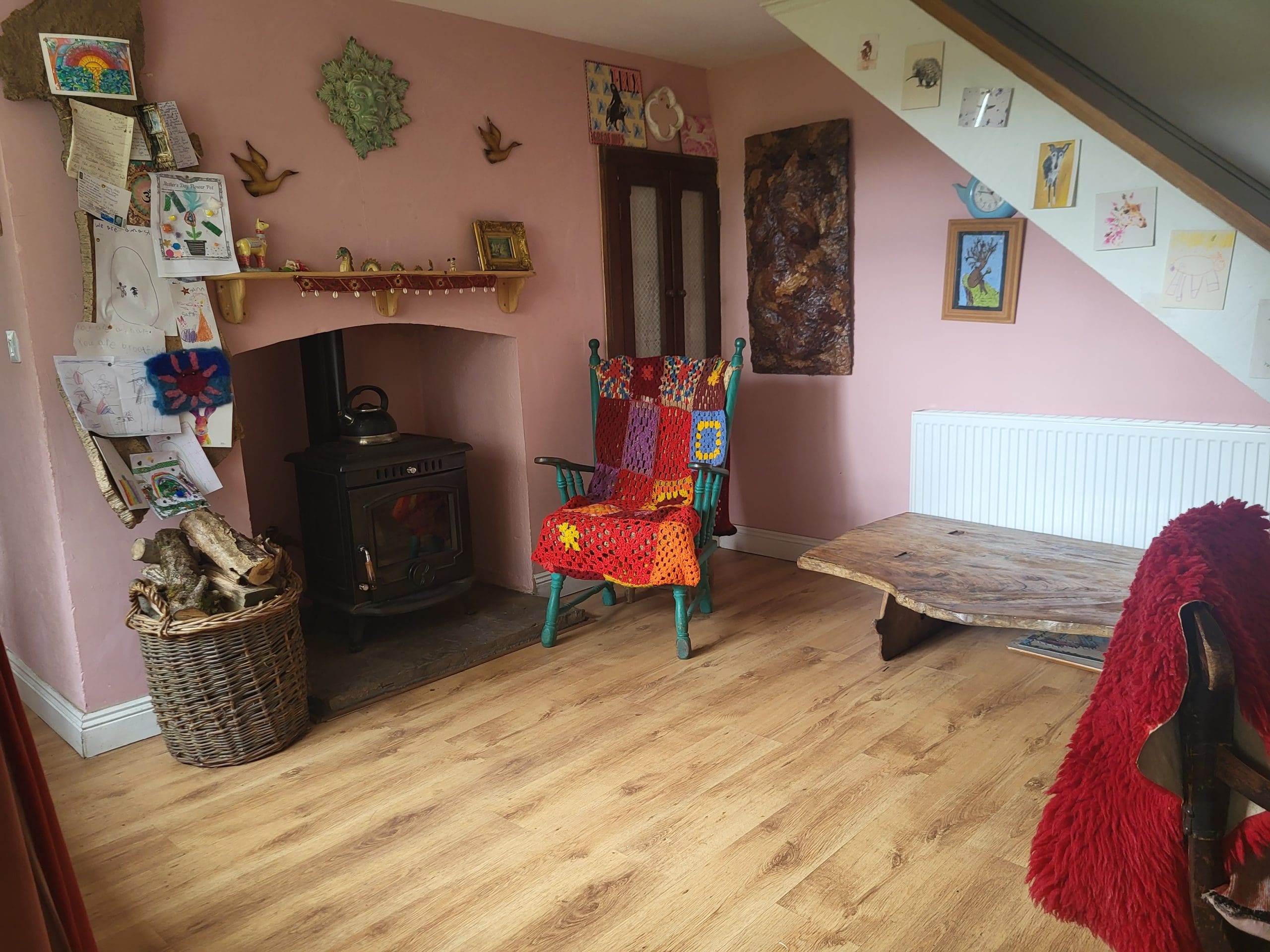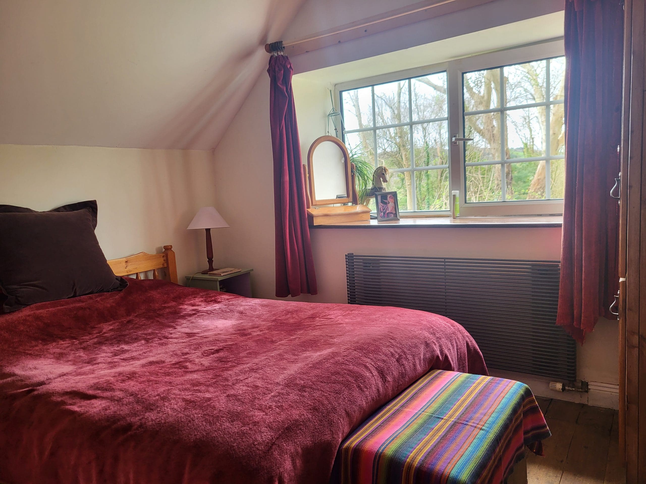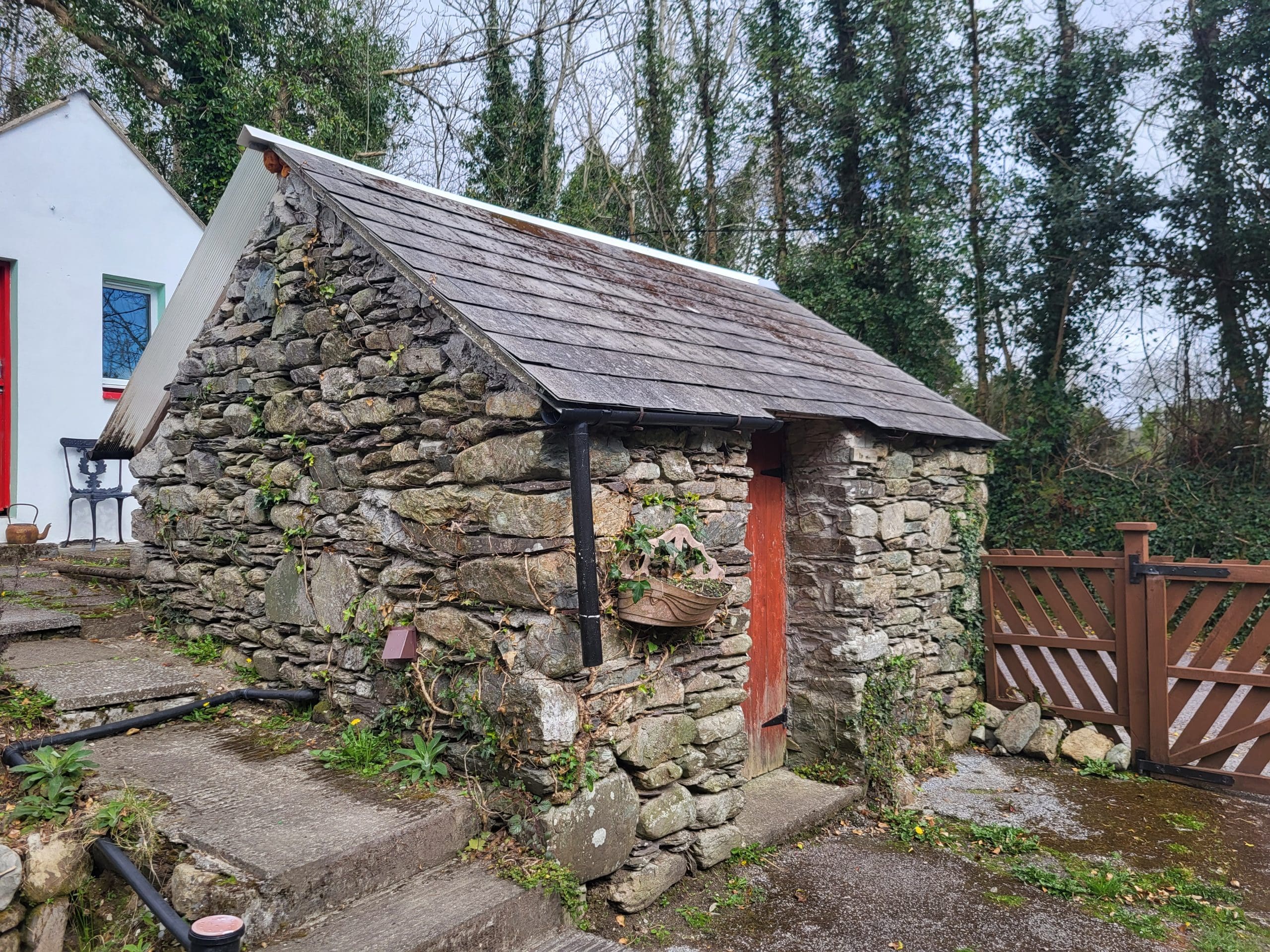Charming Traditional Style 2 Bed Country Cottage On C.1 acre small holding. This extended Cottage is a nicely situated, well maintained and tastefully decorated traditional style country cottage. The residence has been extended, offering spacious living accommodation with modern conveniences, yet retains many of the traditional features. The residence has a southerly aspect and stands on a mature C.1 acre site, with hedging and well established trees to the boundaries, while small pathways connect mature apple trees, wooded areas, kids play area, with rose, flower and shrub beds interspersed throughout the garden. Within this lovely mature site are further buildings, a modern fully insulated steel framed and clad studio, (6 m x 4 m) ; original single storey stone built storehouses, which are also insulated; and a large purpose built woodshed. There is a south facing organic vegetable garden, soft fruit bushes, and the possibility of purchasing a very large, 15 x 42 foot , polytunnel should that suit . Part of the property is in the second year of a rewilding project. The extended cottage is cosy, warm and light, located in a quiet rural location, 9 km to the north west of the market town of Dunmanway. The surrounding landscape comprises of undulating pasture lands, wooded hillside and mountain views in all a very desirable countryside location.