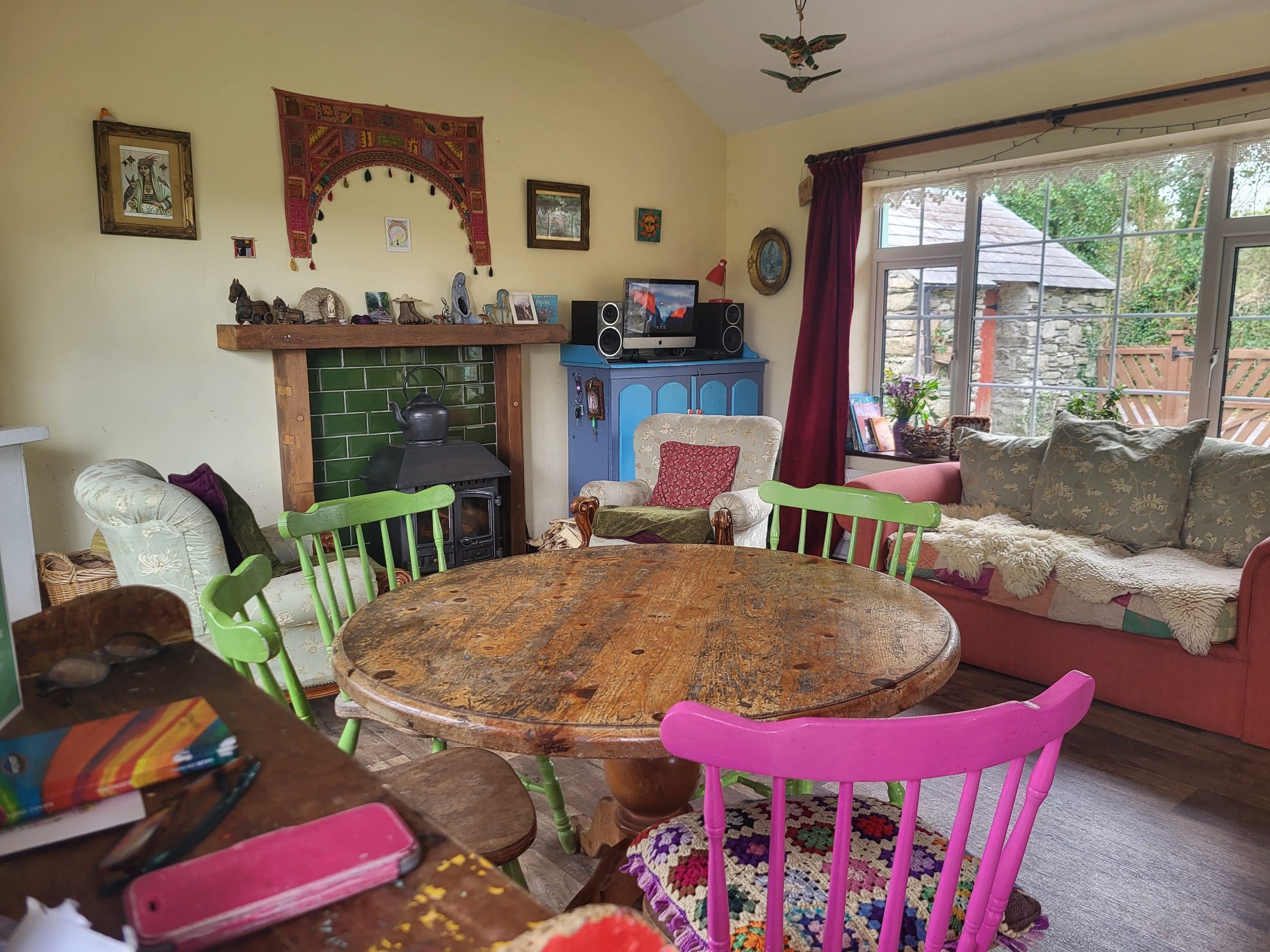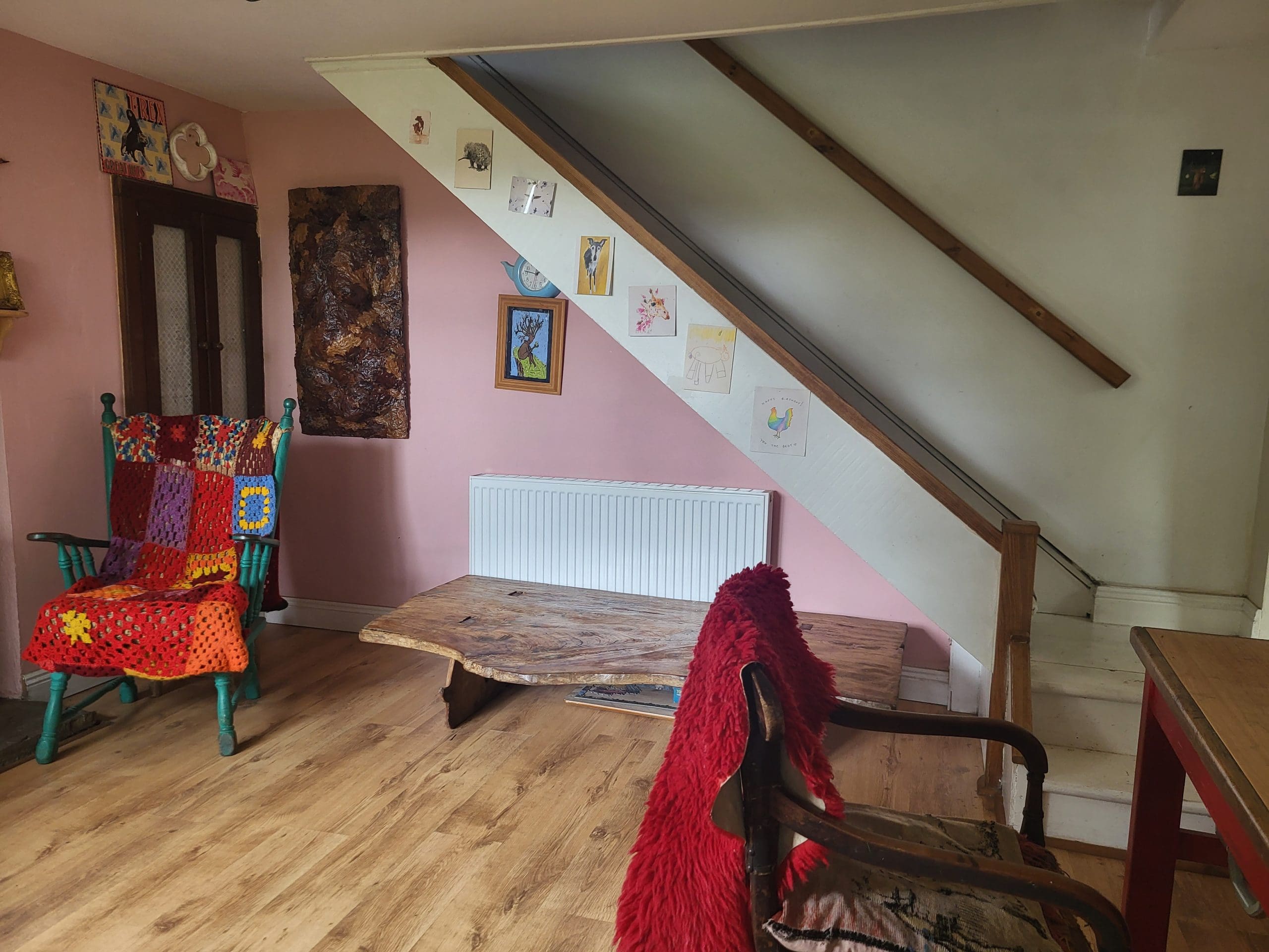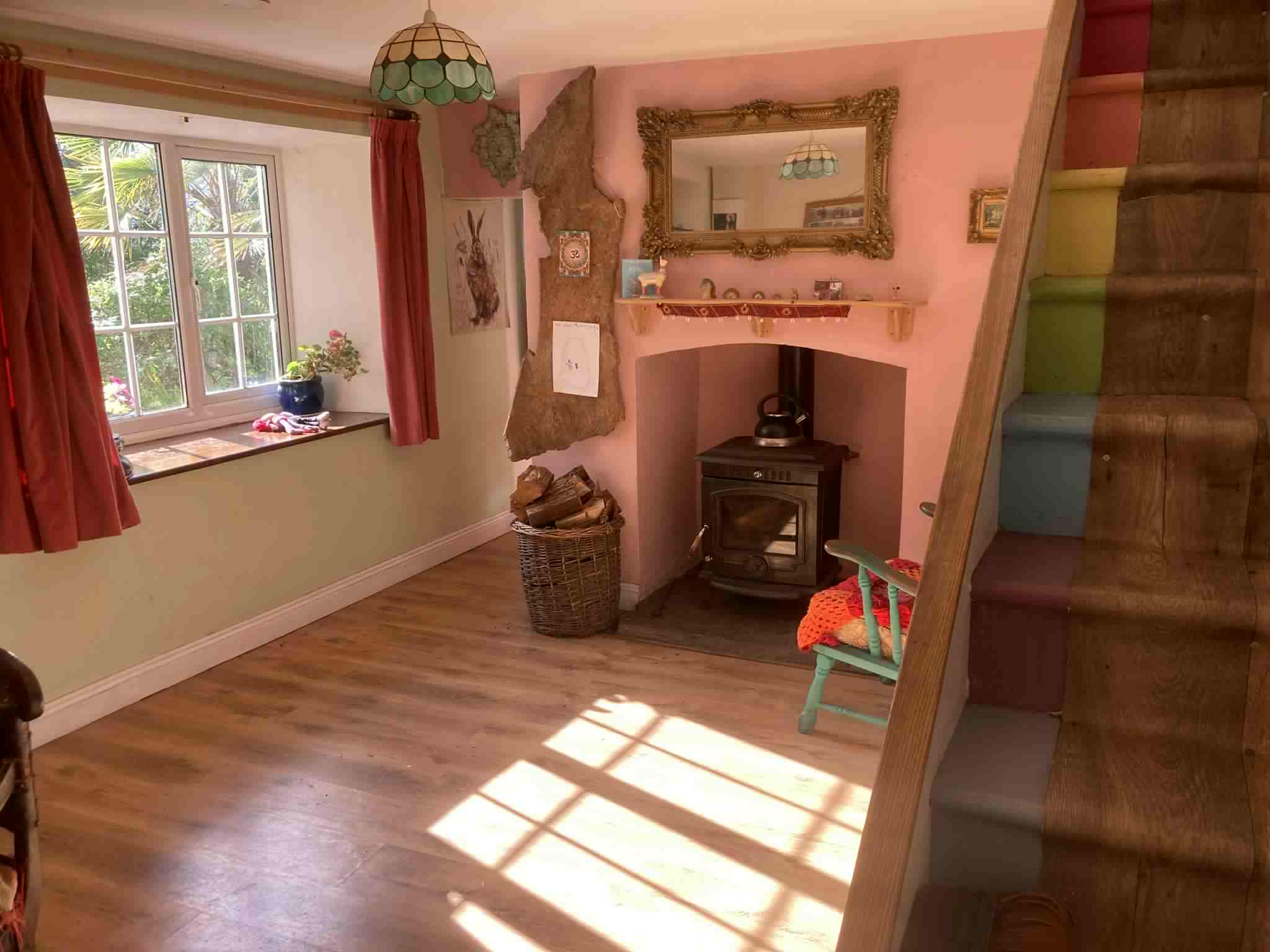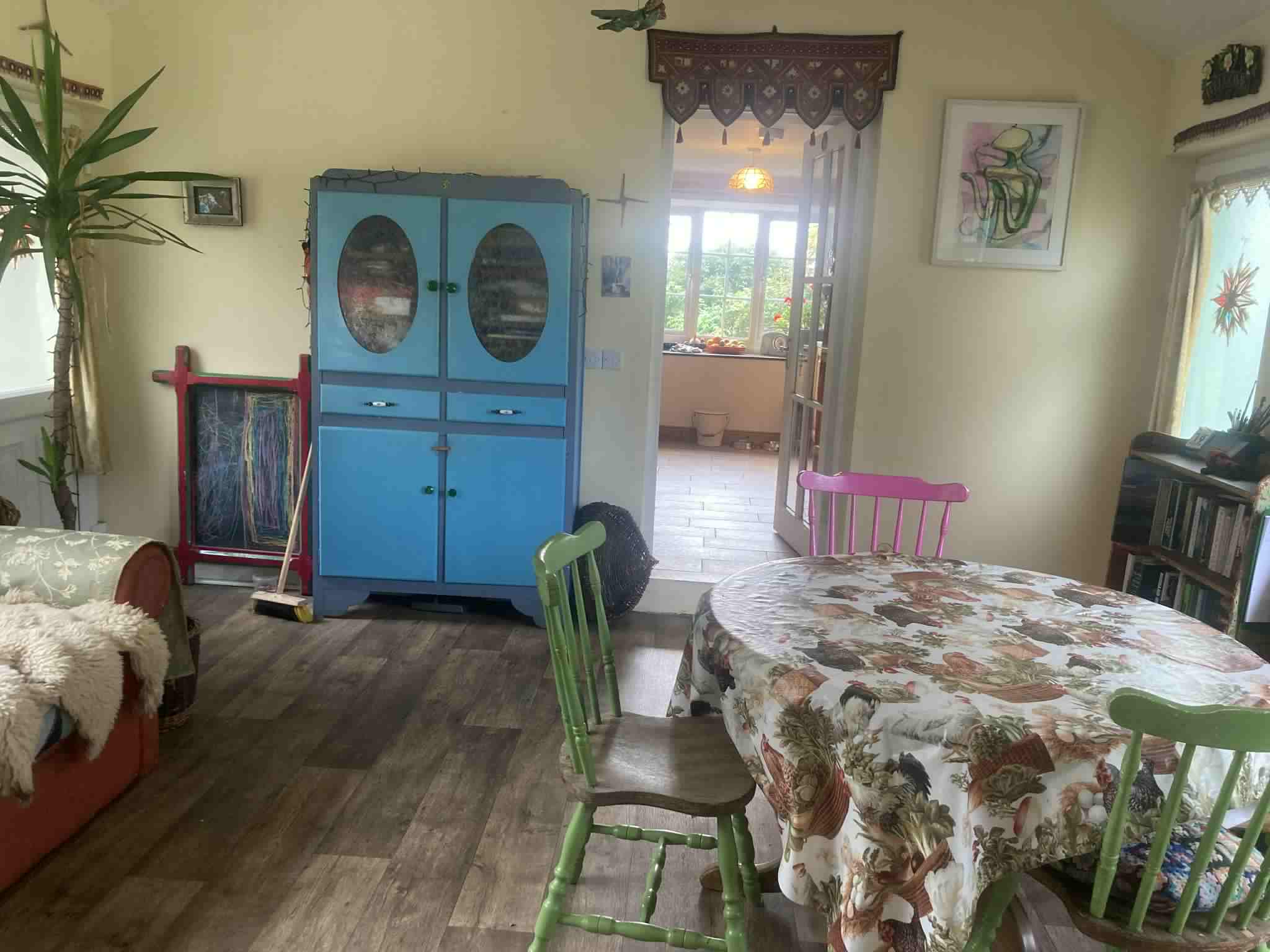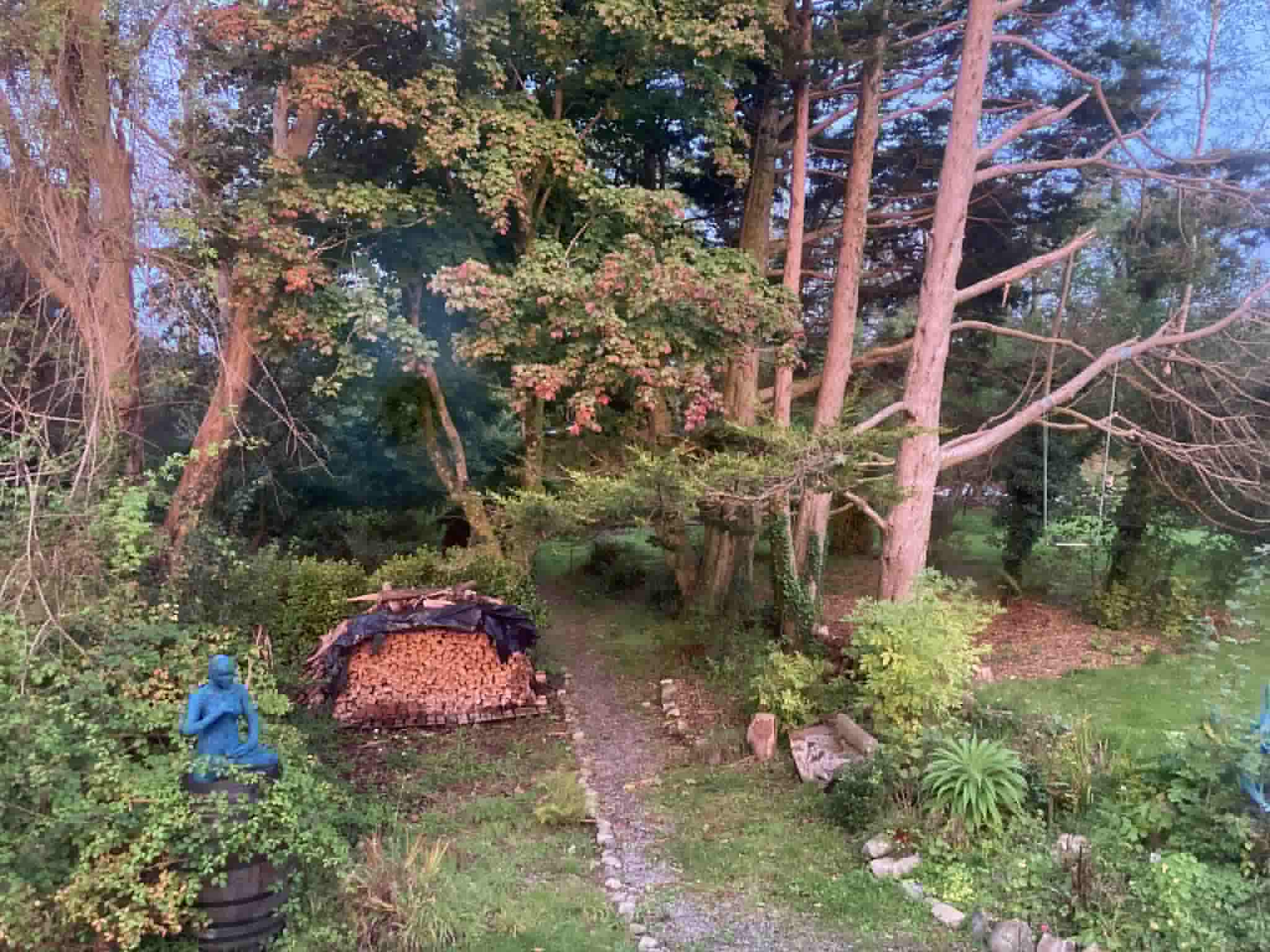 Charming Traditional Style 2 Bed Country Cottage On C.1 acre small holding. This extended Cottage is a nicely situated, well maintained and tastefully decorated traditional style country cottage. The residence has been extended, offering spacious living accommodation with modern conveniences, yet retains many of the traditional features. The residence has a southerly aspect and stands on a mature C.1 acre site, with hedging and well established trees to the boundaries, while small pathways connect mature apple trees, wooded areas, kids play area, with rose, flower and shrub beds interspersed throughout the garden. Within this lovely mature site are further buildings, a modern fully insulated steel framed and clad studio, (6 m x 4 m) ; original single storey stone built storehouses, which are also insulated; and a large purpose built woodshed. There is a south facing organic vegetable garden, soft fruit bushes, and the possibility of purchasing a very large, 15 x 42 foot , polytunnel should that suit . Part of the property is in the second year of a rewilding project. The extended cottage is cosy, warm and light, located in a quiet rural location, 9 km to the north west of the market town of Dunmanway. The surrounding landscape comprises of undulating pasture lands, wooded hillside and mountain views in all a very desirable countryside location.