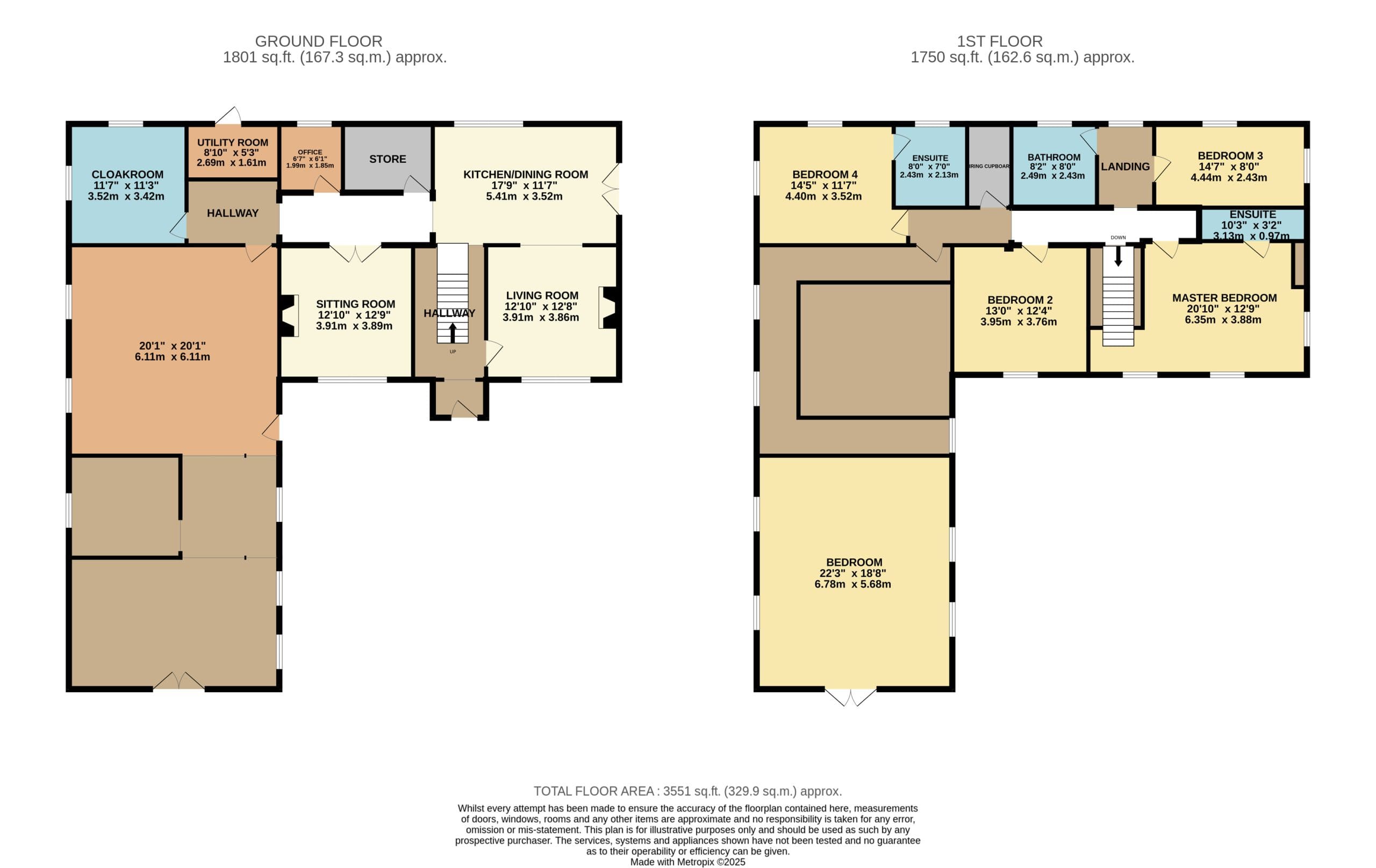 First Floor: 3 Double Bedrooms 2 with en-suite bathrooms, 1 Single Bedroom, Bathroom.
